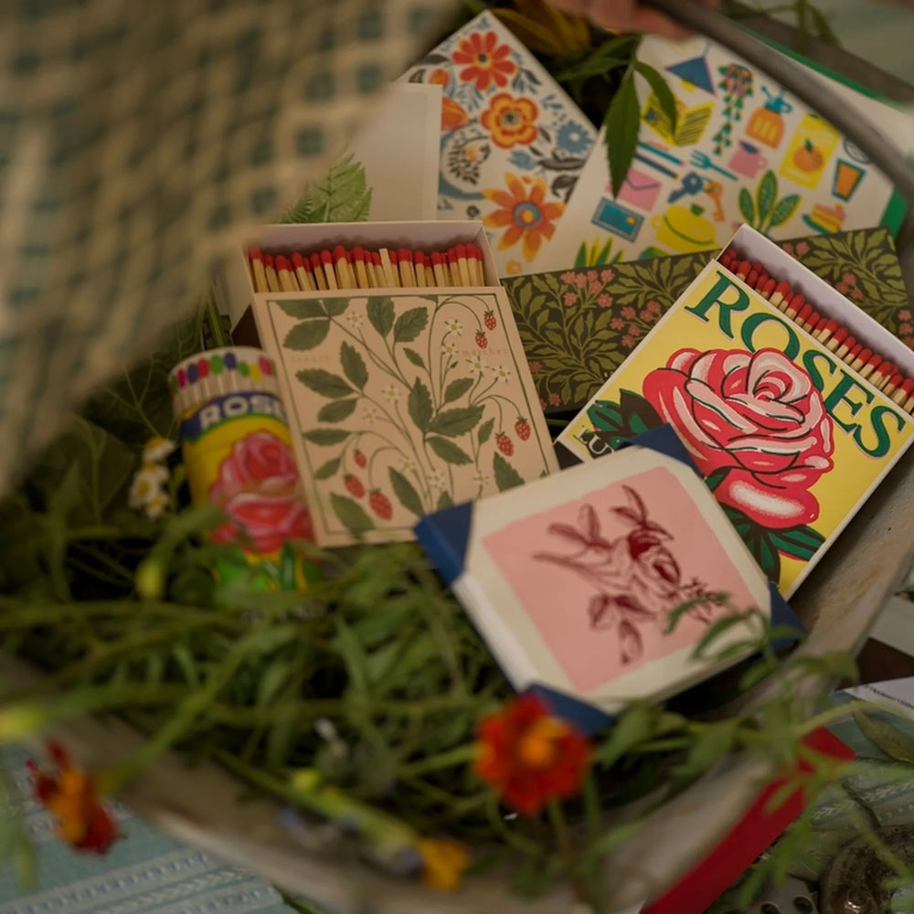 Dekorativne šibice u dizajnerskoj kutiji, osmišljene kao funkcionalan i estetski dodatak za dom. Idealne za svijeće, kamin ili kao mali dizajnerski detalj na polici.