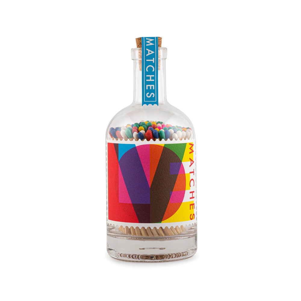 Dekorativne šibice u staklenoj bočici s plutanim čepom, osmišljene kao funkcionalan i diskretan detalj za dom.