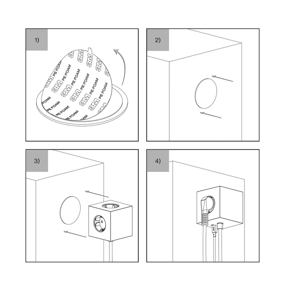 Zidni produžni adapter s 3 Schuko utičnice i 2 USB-C porta (ukupno do 30W) – elegantno i funkcionalno rješenje za dom, ured ili javni prostor.