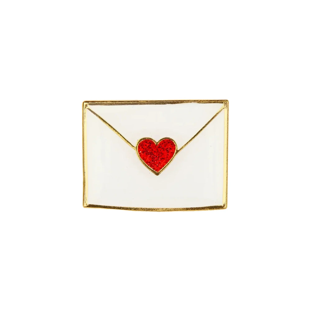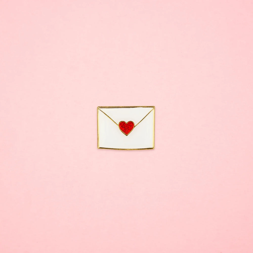 Jednostavan, ali šarmantan broš u obliku omotnice zapečaćene srcem.